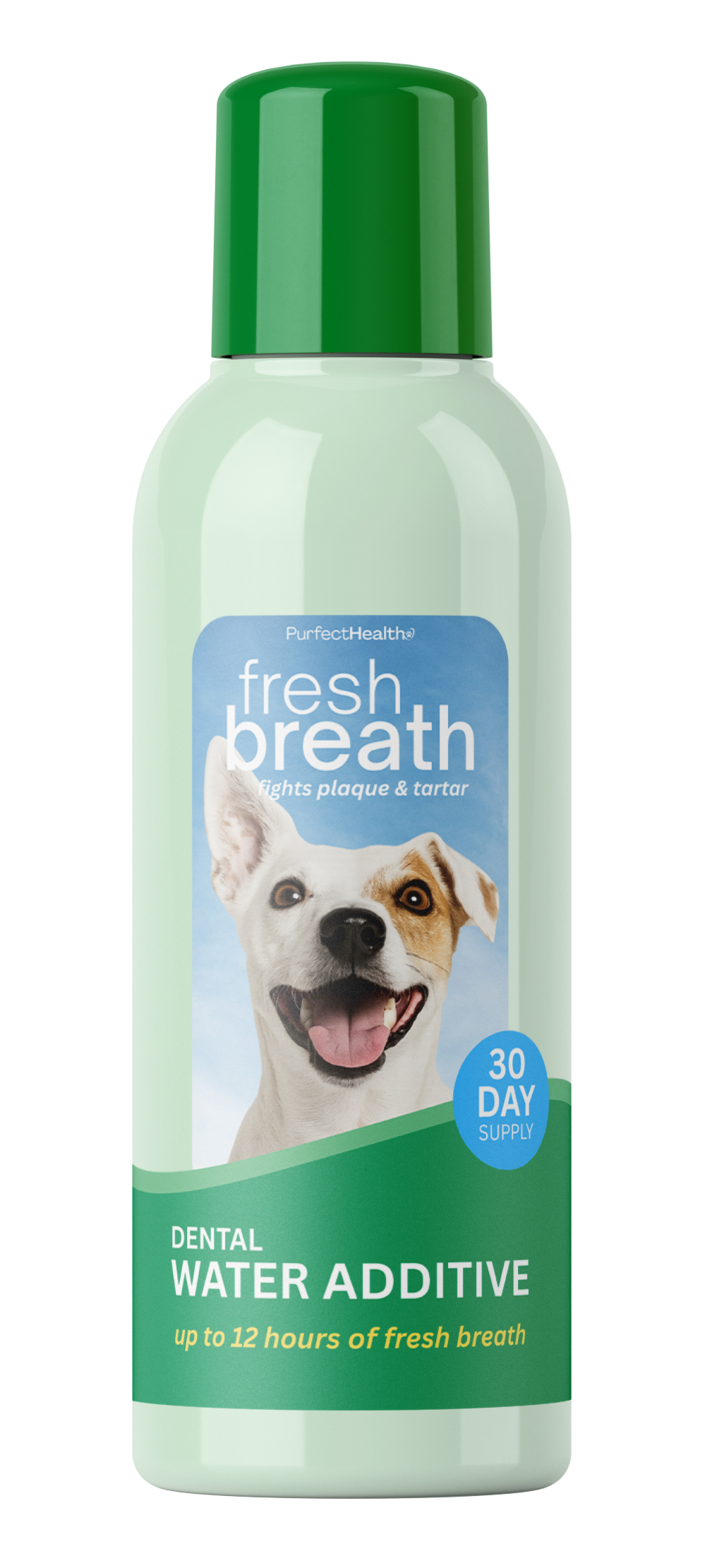 The Purfect Health Dental Water Additive makes daily oral care effortless. A few drops in your dog’s water bowl deliver a gentle, food-grade antibacterial action that helps break down plaque, freshen breath, and support strong teeth and healthy gums - all without brushing.
